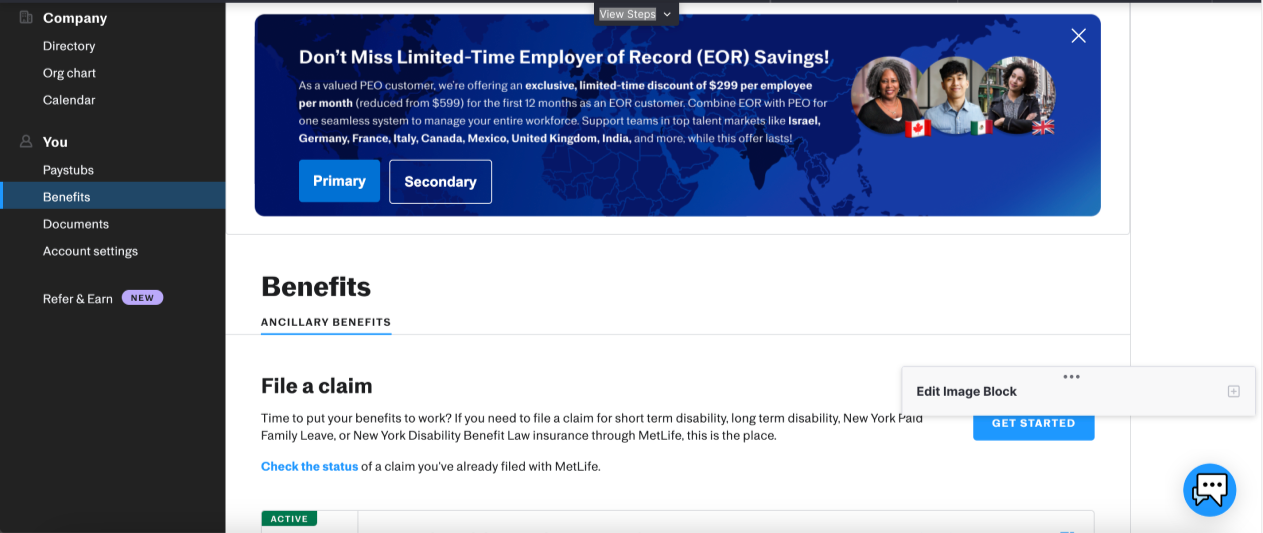 We were launching a limited time offer, exclusive to existing Justworks customers, and needed to find a way to integrate that into our platform. I worked with Product Designers, our Experience Designers, Product Marketing Manager for International, and Lifecycle team to support this promotional launch as part of an integrated lifecycle campaign.